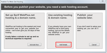Wanneer het 'Publish To Web: Get Hosting'-