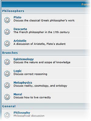 multiple subforums (Plato, Aristotle, Descartes, etc.).