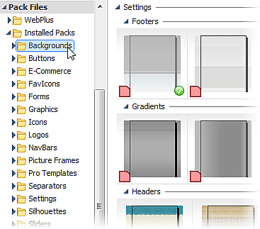Packs), installed with WebPlus.