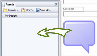 • Drag the object from the page and drop it onto the Assets tab's My Designs category. You don't need to expand the category in advance, as it will automatically expand for you.